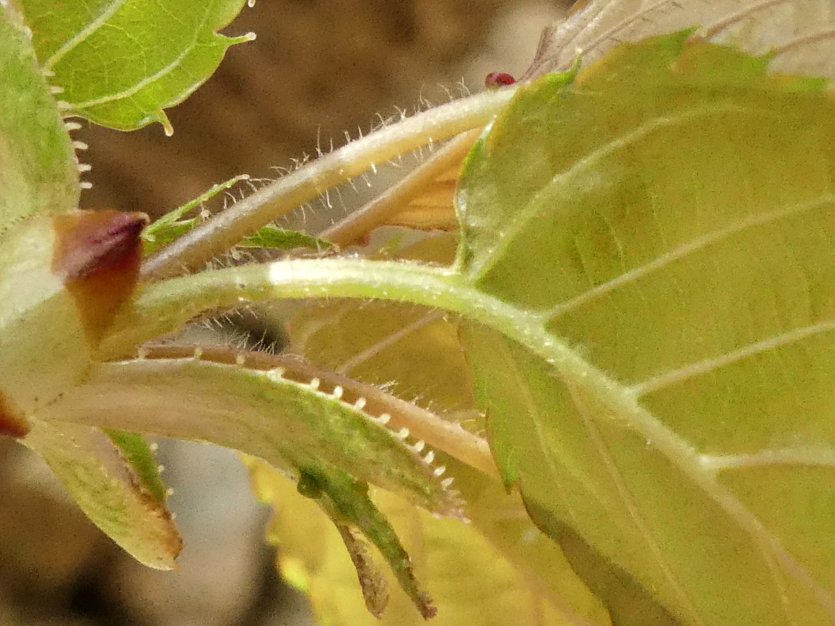 葉柄に毛が生えている(ヤマザクラは無毛)