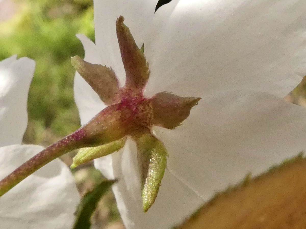 通常はカスミザクラはガク片に鋸歯がないが、この木には2~3個の鋸歯のあるガク片を持つ花も見られる。