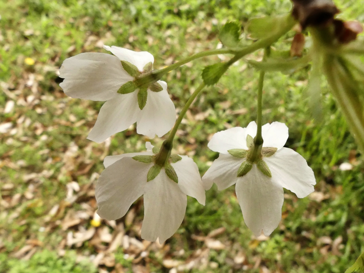 千畳敷芝生広場の北東の園路沿いに植えられているもの。 小花柄に開出毛が散生している。