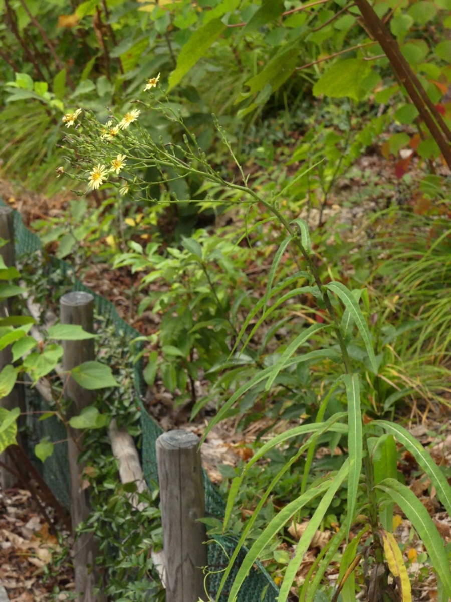 - ホソバアキノノゲシとの違いは葉の形にある。ホソバアキノノゲシは葉に切れ込みが少なく、より細長い。