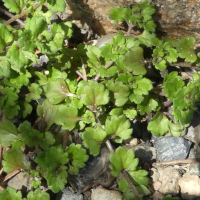 古くからある石垣や道端に生える越年草で、茎は分枝して広がり長さ10~25cmになる。