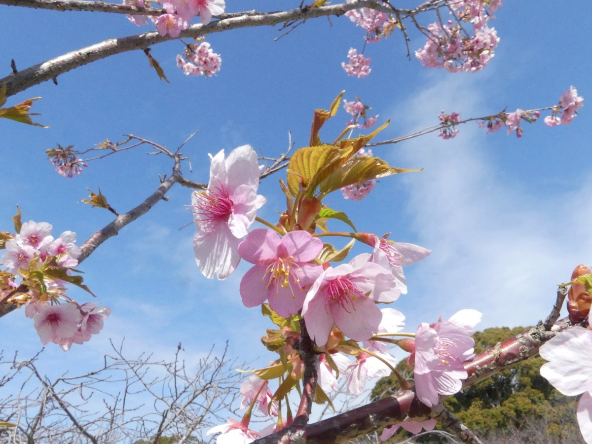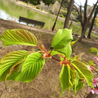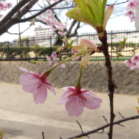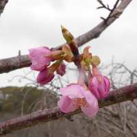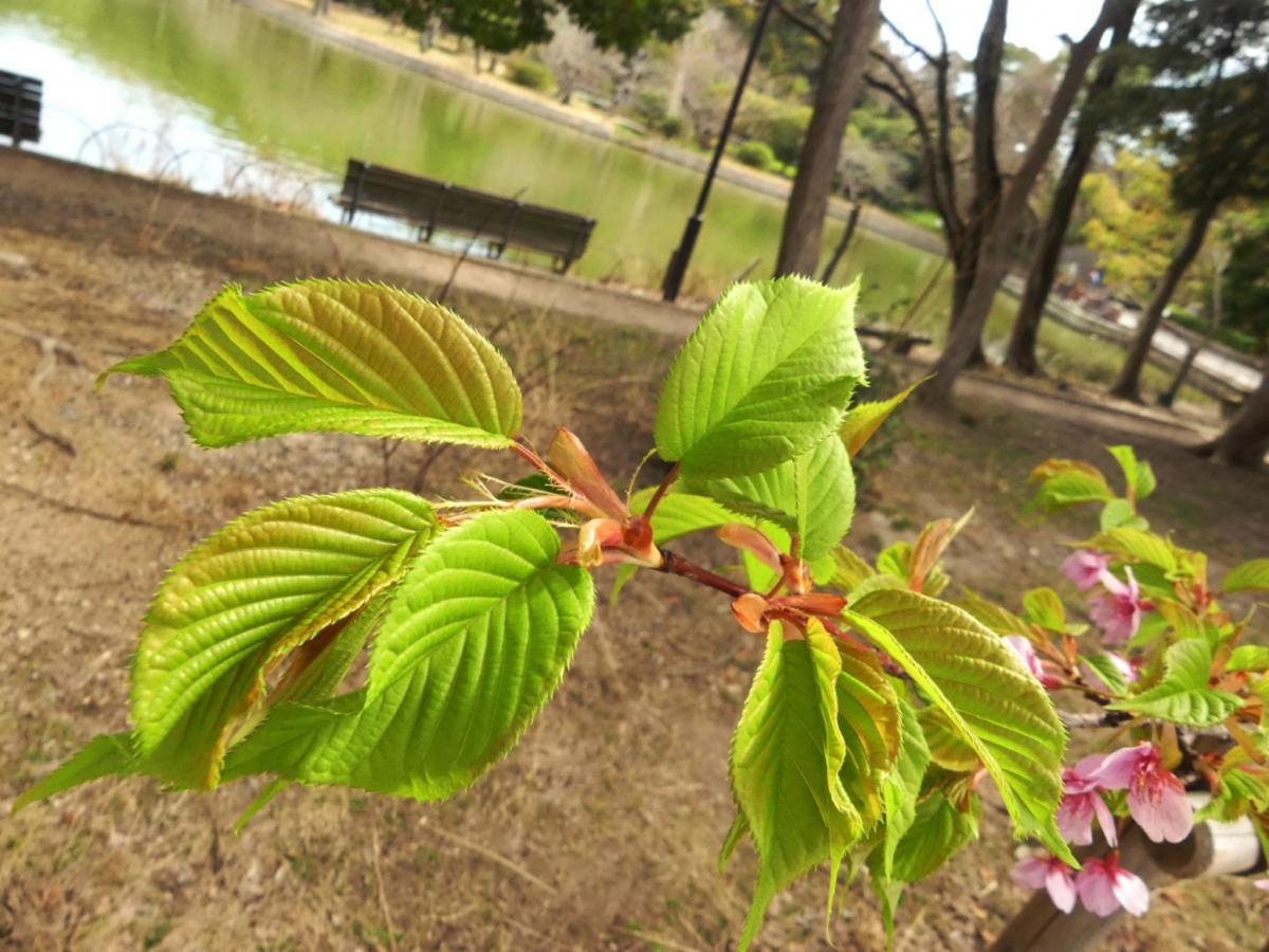 剛ノ池の北の芝生地に1本だけ植えられたもので、早くも花を咲かせています。花はピンク色ですが、色の濃いものから薄いものまで色むらがあります。