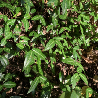 類似種のテイカカズラとは葉だけで見分けるのはかなり困難であり、花と葉の両方で見分けるのが確実である。