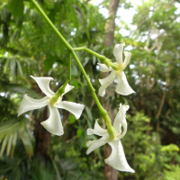 日本の本州(近畿地方以西)、四国、九州、琉球列島と、韓国、中国(南部)、ベトナムに分布する常緑のつる性植物である。葉は光沢があり、楕円形で、葉脈がはっきりしている。春から初夏にかけて、甘い香りのする白色の船のスクリューのような形の花を咲かせるのが特徴である。
