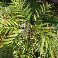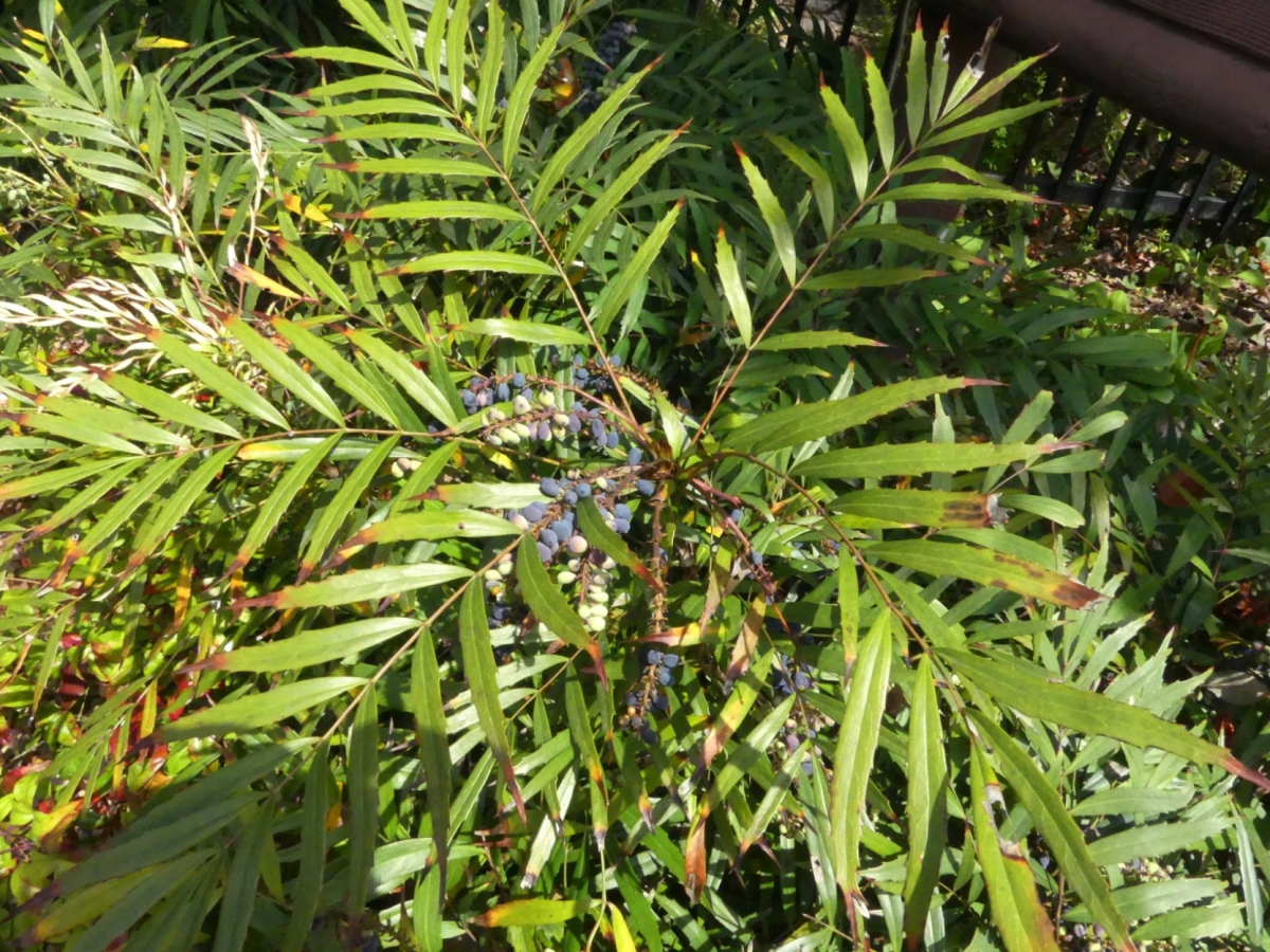 中国原産のヤナギバヒイラギナンテンが改良されて作られた園芸品種で、家の庭やマンションの植え込みなどによく植えられている。