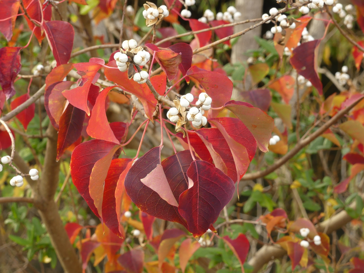 種子は白色のロウ物質に包まれており、紅葉の頃には果皮が落ちて白い種子が目立つ。