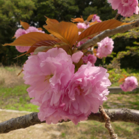 オオシマザクラ系の栽培品種のサトザクラ群の八重桜。