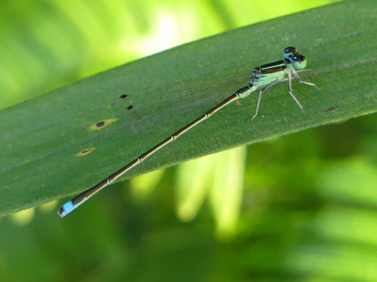 オスは、胸部が青緑色で腹部第9節が青色。メスは、未成熟のとき橙色で、成熟すると鈍い黄緑色。