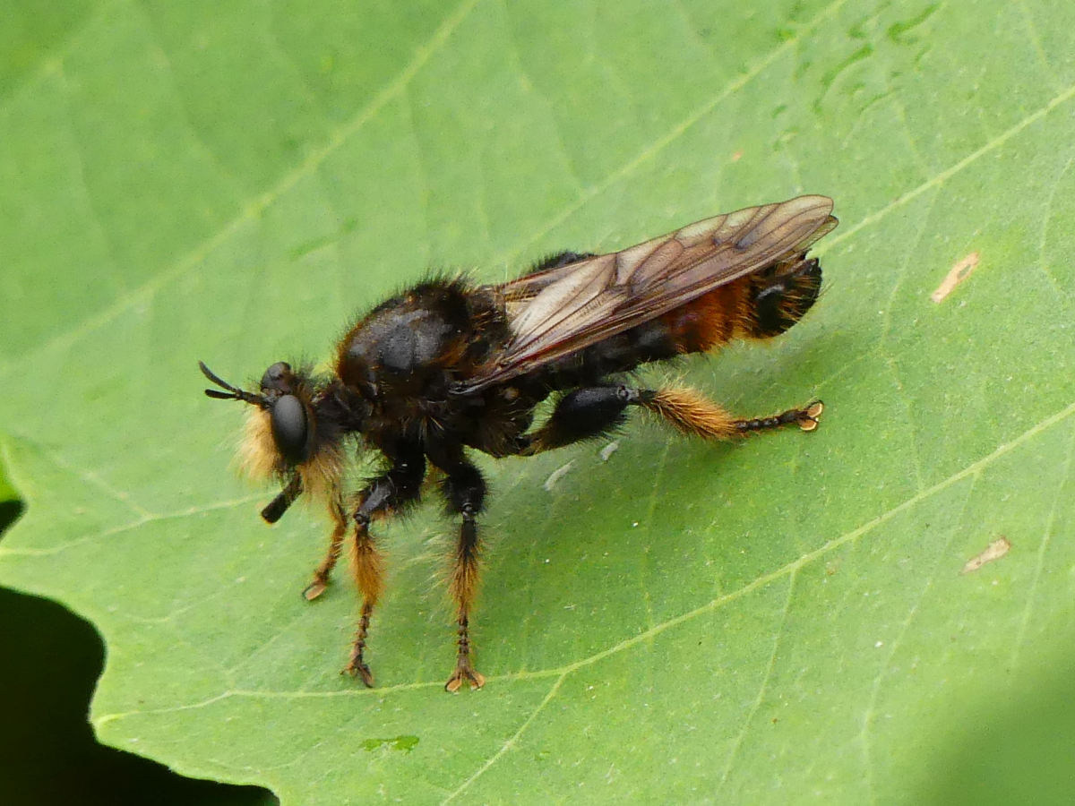 ムシヒキアブの仲間で、たの昆虫を捕らえて体液を吸う。