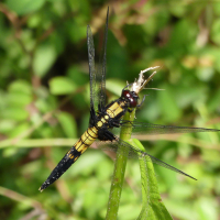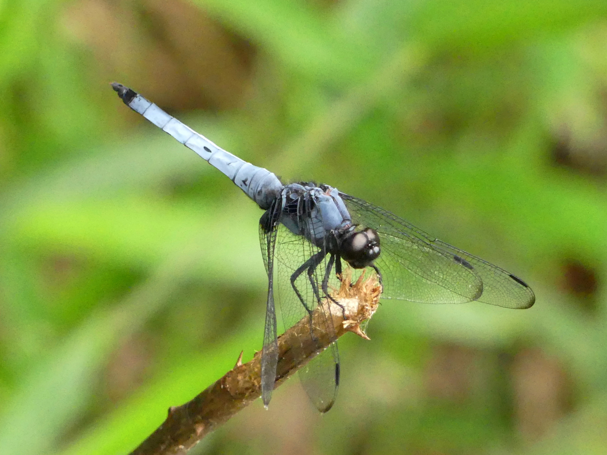 ・オスの体色は水色で腹部の先端2節が黒い。後翅の基部も黒い。メスは黄色で腹部の先半分が黒い。