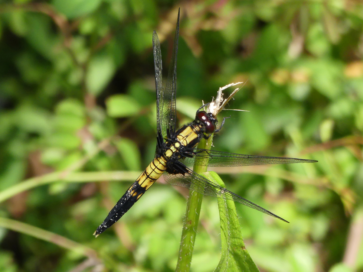 ・生息環境:平地~山地の湿地、水田、休耕田、ため池 ・周囲が樹林に囲まれた閉鎖的な環境を好む。 ・未熟な成虫は、成熟するまで林の中で過ごす。 ・成熟したオスは縄張りを持ち、水面に出た枝先や杭などに止まってメスを待つ。 ・オスの体色は水色で腹部の先端2節が黒い。後翅の基部も黒い。メスは黄色で腹部の先半分が黒い。