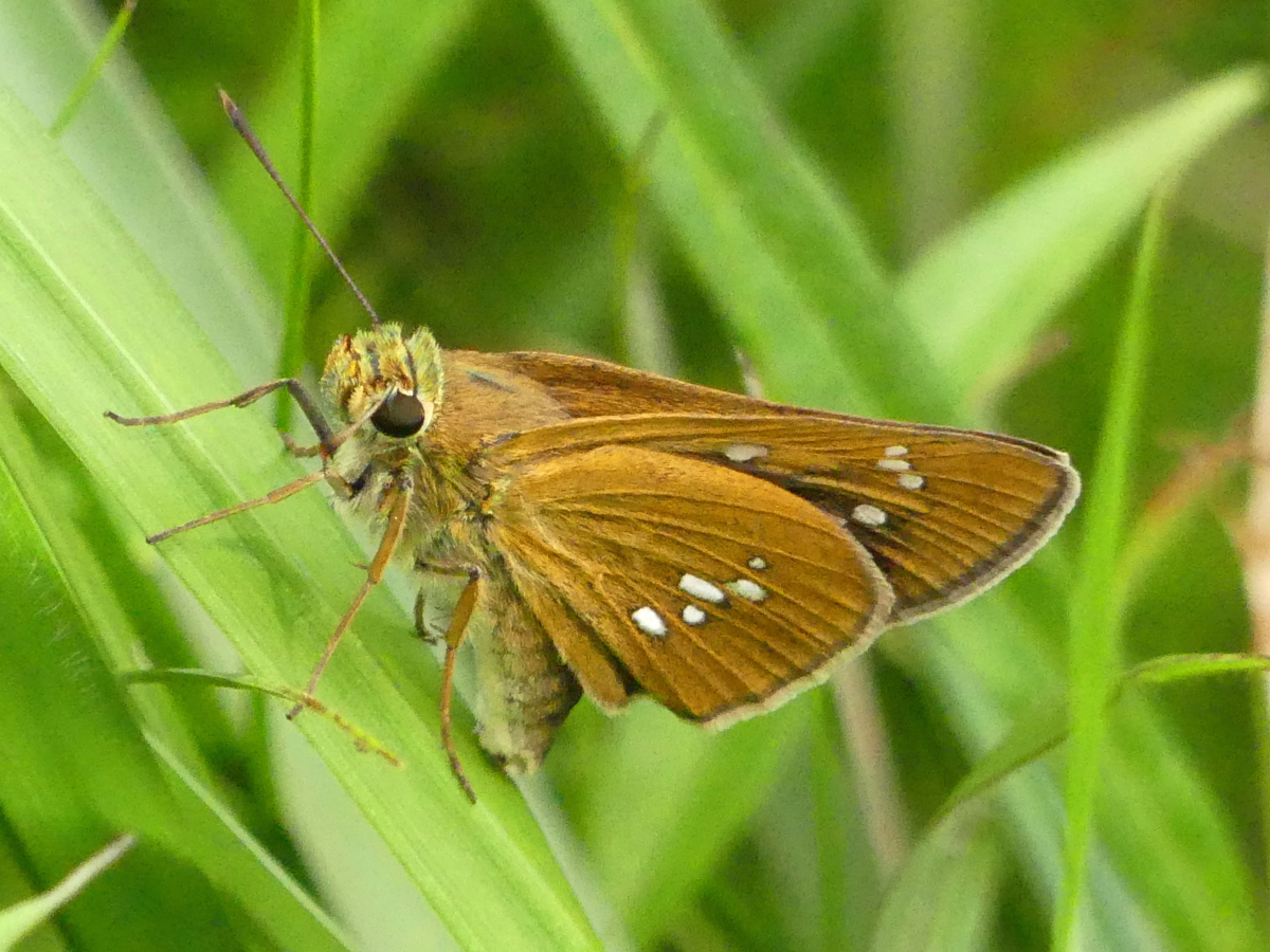 茶色のセセリチョウ。イチモンジセセリに似る。