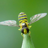 ハナアブ科ヒラタアブ亜科の小さなアブ。
