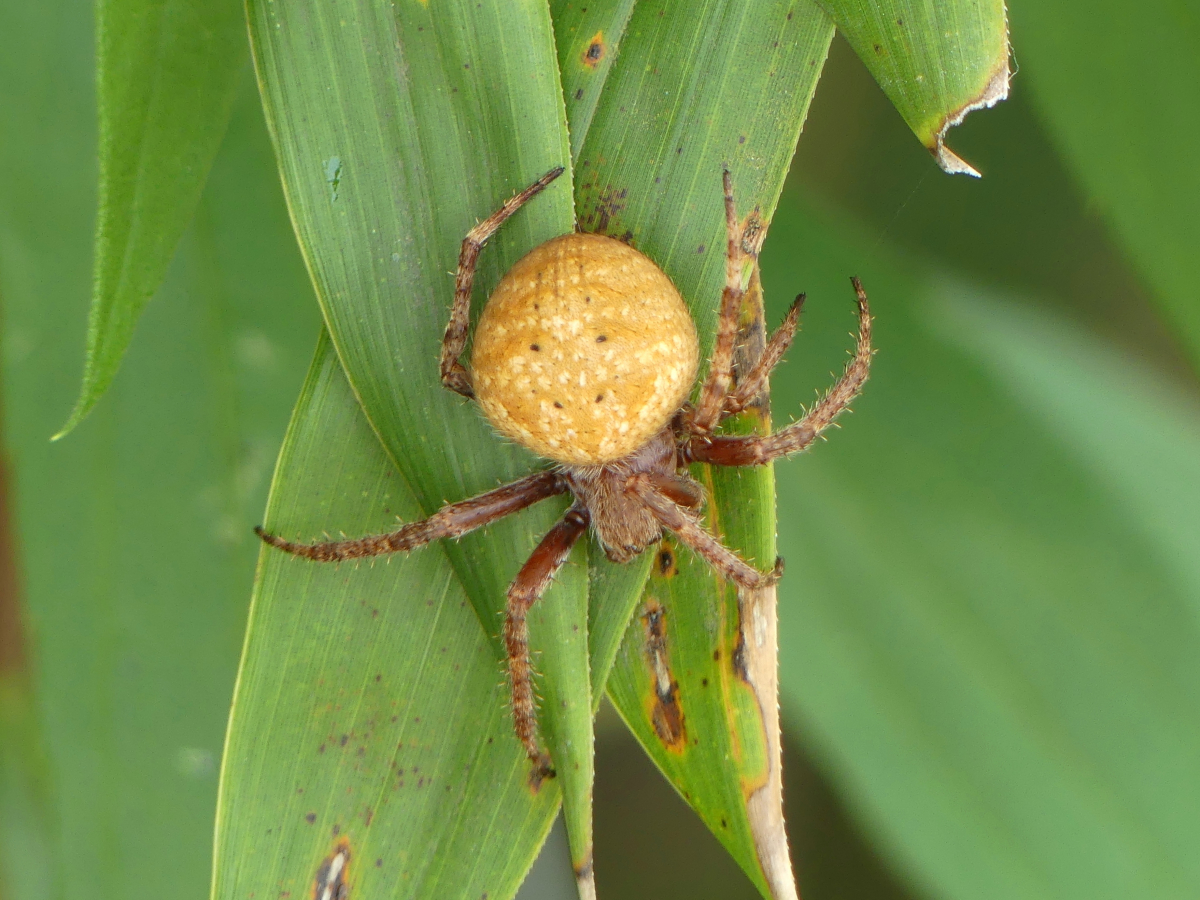 オニグモの一種。 体色の変異ははげしい。 夜行性で、草間に垂直の網を張る。 日中は草の影に隠れていることが多い。