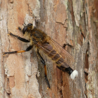 褐色の大きなムシヒキアブ。