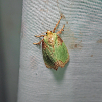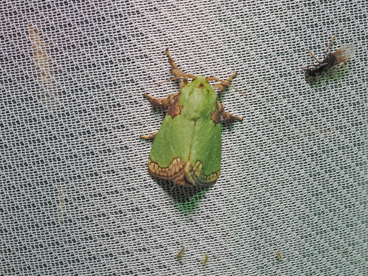 アオイラガは中型の蛾で、成虫の開張は約30~40mm程度である。