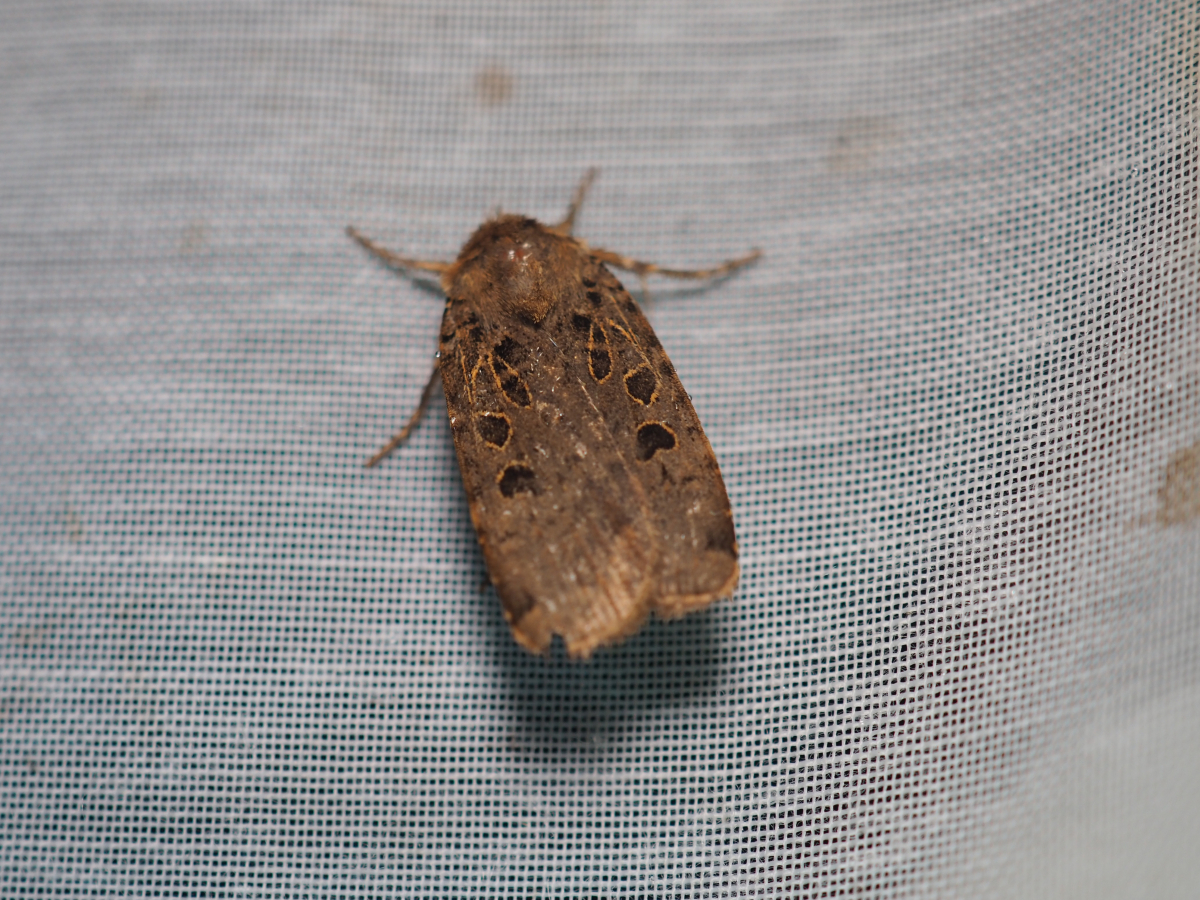 モンヤガ亜科の一種。 年1化で5月頃羽化し、夏眠した後、秋に活動を再開する。 翅にハート型の紋がある。