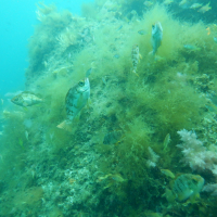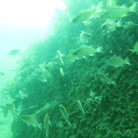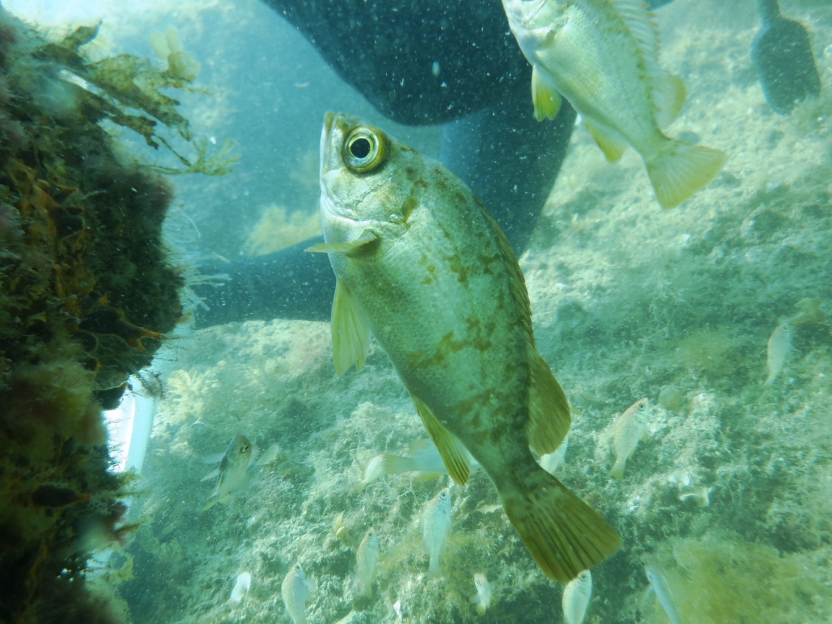 アカメバルは藻場や岩礁帯に好んで生息しており,海藻の陰や岩陰に群れで定位している様子を観察することができる。また、港や堤防付近でもよく見ることができる。