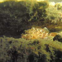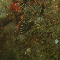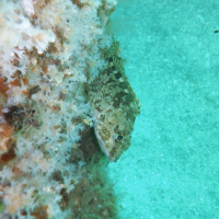 • オニオコゼは比較的体長が大きく,体から苔のような突起が出ていて背鰭が突き出ていることから区別できる。