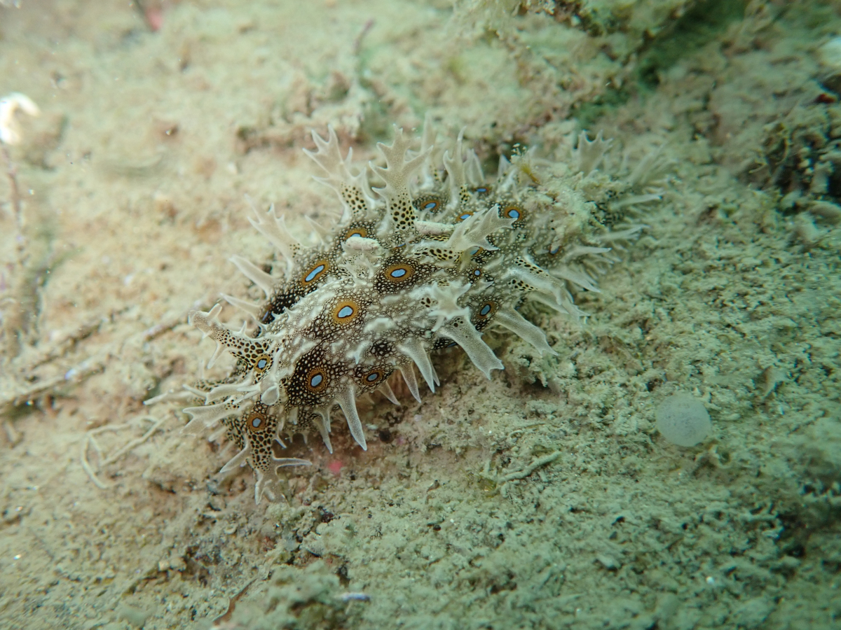 フレリトゲアメフラシは、その見た目から一見すると危険な動物のようにも見えますが、実際には無毒で人に対して危害を加えることはありません。また、体内に有害な化学物質を蓄積することが知られており、これが捕食者から身を守る手段になっていると考えられています。観察の際は、死んだ個体や破損した部分を無闇に触らないように注意が必要です。
