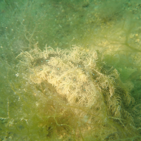 フレリトゲアメフラシは、体長が約20〜30センチメートルに達することがある大型のアメフラシです。体色は一般的に緑がかった茶色で、体全体に細かい斑点が散らばっています。背面には小さな突起があり、これが名前の由来となっている「トゲ」のように見えることがあります。触角は二対あり、前方の触角は頭部に近く、後方の触角は体の中央部に位置しています。