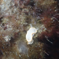 ミツイラメリウミウシは、全体的に細長い体型をしており、色は白から淡い青色で、背面には細かい斑点模様が入ります。触角は透明で、一部に白い斑点が見られます。また、触角の先端は、ほかのウミウシと比べるとやや細長くなっています。