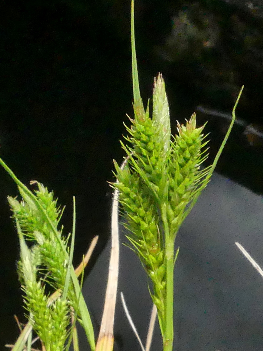 - マメスゲは、やや硬めの葉をもつ種で、雌小穂は株の根元近くに生じ、そこから長く茎を伸ばして先端に雄小穂をつける。