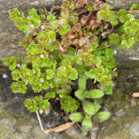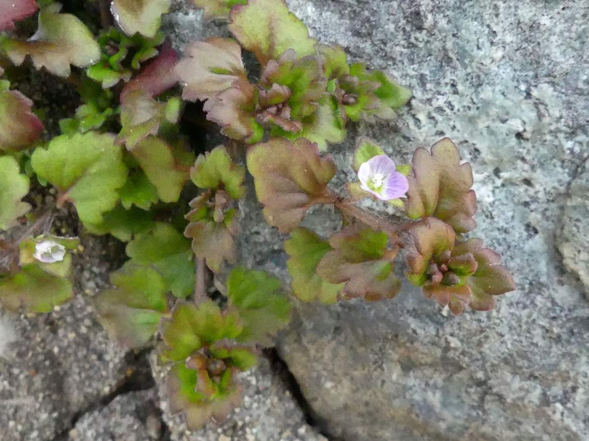 古くからある石垣や道端に生える越年草で、茎は分枝して広がり長さ10~25cmになる。