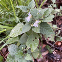 葉は卵形~広卵形、縁は全縁~浅波状、葉の幅がやや広い。葉の両面に屈毛があり、葉裏の脈にも屈毛がある。葉面はほとんど無毛のものもある。