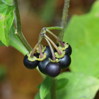 果実は直径8mm前後、未熟な緑色のときにも光沢がほとんどなく、熟して黒くなっても光沢はない。ただし、かなり光沢のある果実が混じるときもある。果実の果肉の中に球状の顆粒がない。