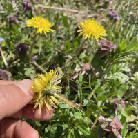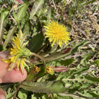近畿地方に分布し黄色い花をつけるよく似たヤマザトタンポポは、総苞外片が内片の1/2より長い。
