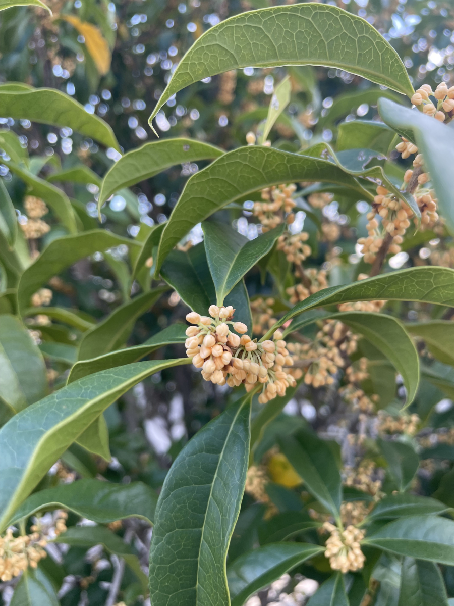 秋になると、オレンジ色の小花を多数咲かせ、甘い香りを周囲に漂わせる。この香りは遠くからでも感じ取ることができ、多くの人々に親しまれている。