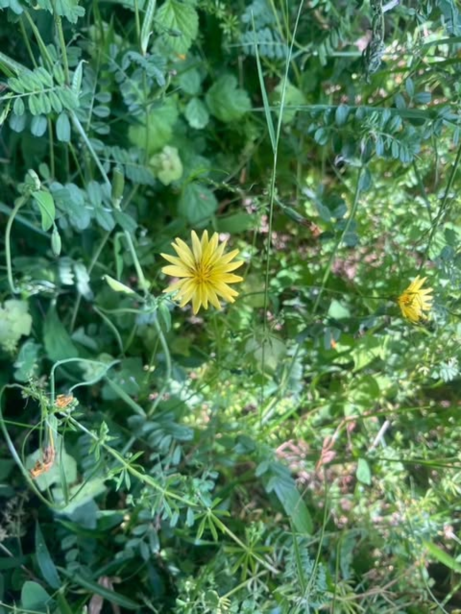 花茎に直径2.5〜3cmの黄色の頭花を2〜3個つける。