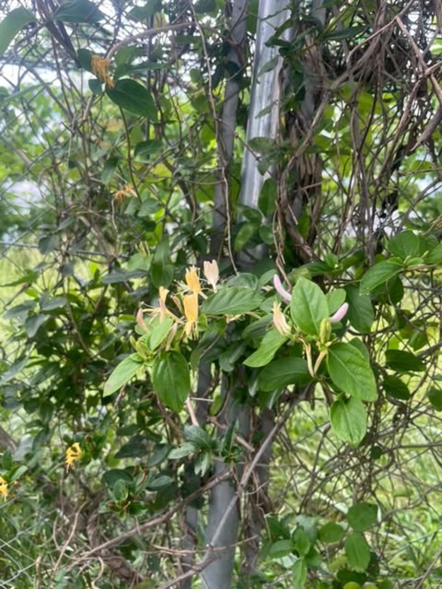 常緑のつる性木本で、林縁や道端に生える。