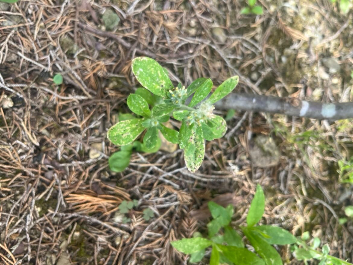 茎は基部で枝分かれして直立し、綿毛が多く白っぽく見える。