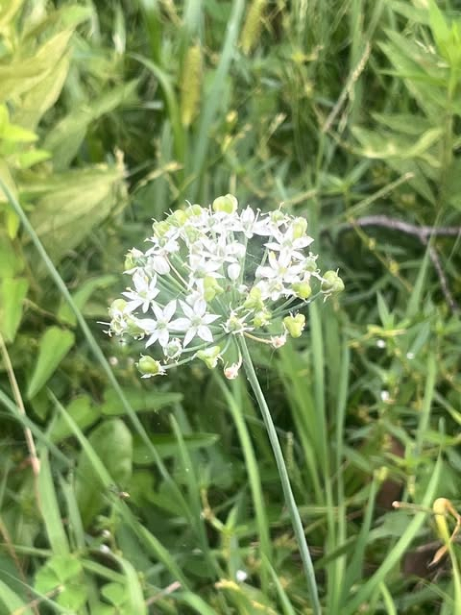 全草が強く臭い(ニラ臭)、根茎がある。葉は線形で長さ20~30cm、幅3~6mmの扁平、先が鈍く尖る。