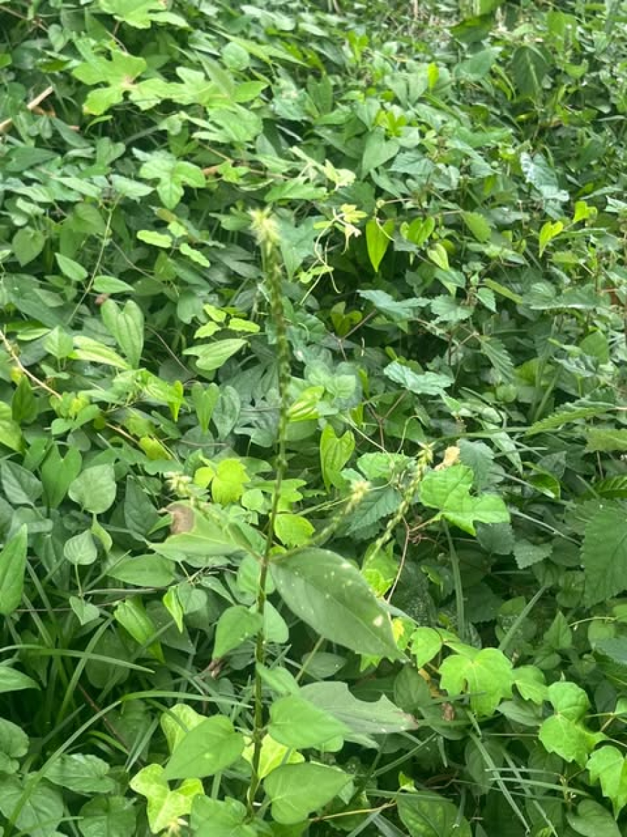 イノコヅチ(ヒカゲイノコズチ)と似ているが、イノコズチより花序が短く、葉の両面に毛が多く、葉の縁が波打ってねじれていることが多いという違いがある。