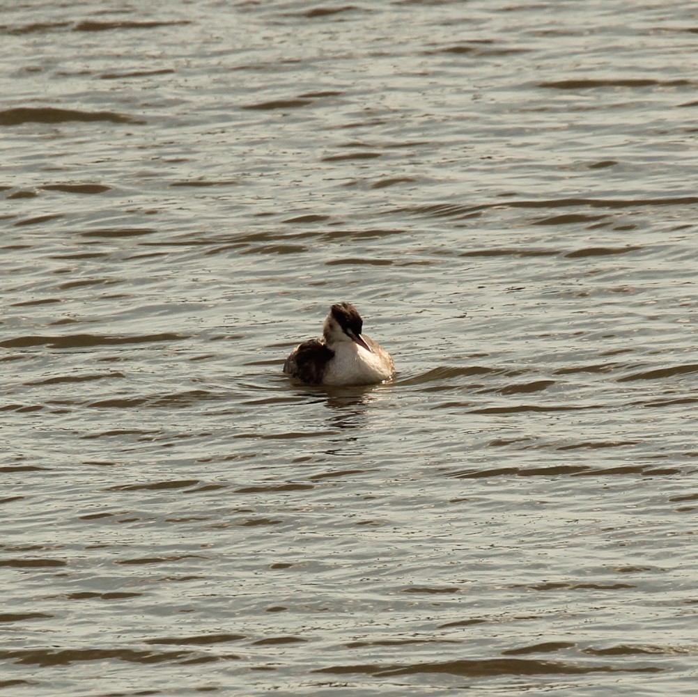 冬羽では冠羽が目立たないが、体形とサイズで他種と区別可能。