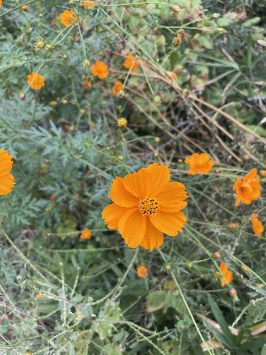 キク科コスモス属の多年草または一年草。開花時期は6月~10月。高さは約30〜100cm。おおむね60cm程度に成長するが、園芸品種は草丈が低い。薄い花弁をもつ、コスモスに似た黄色やオレンジの花(直径3〜5cm程度)を咲かせる。