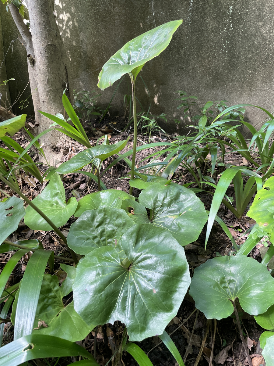 土の下に太くて短い根茎があり、土の上には長い柄をもつ葉(根出葉)だけが数枚出る。フキの葉柄には穴が空いているが、ツワブキの葉柄には穴がない。