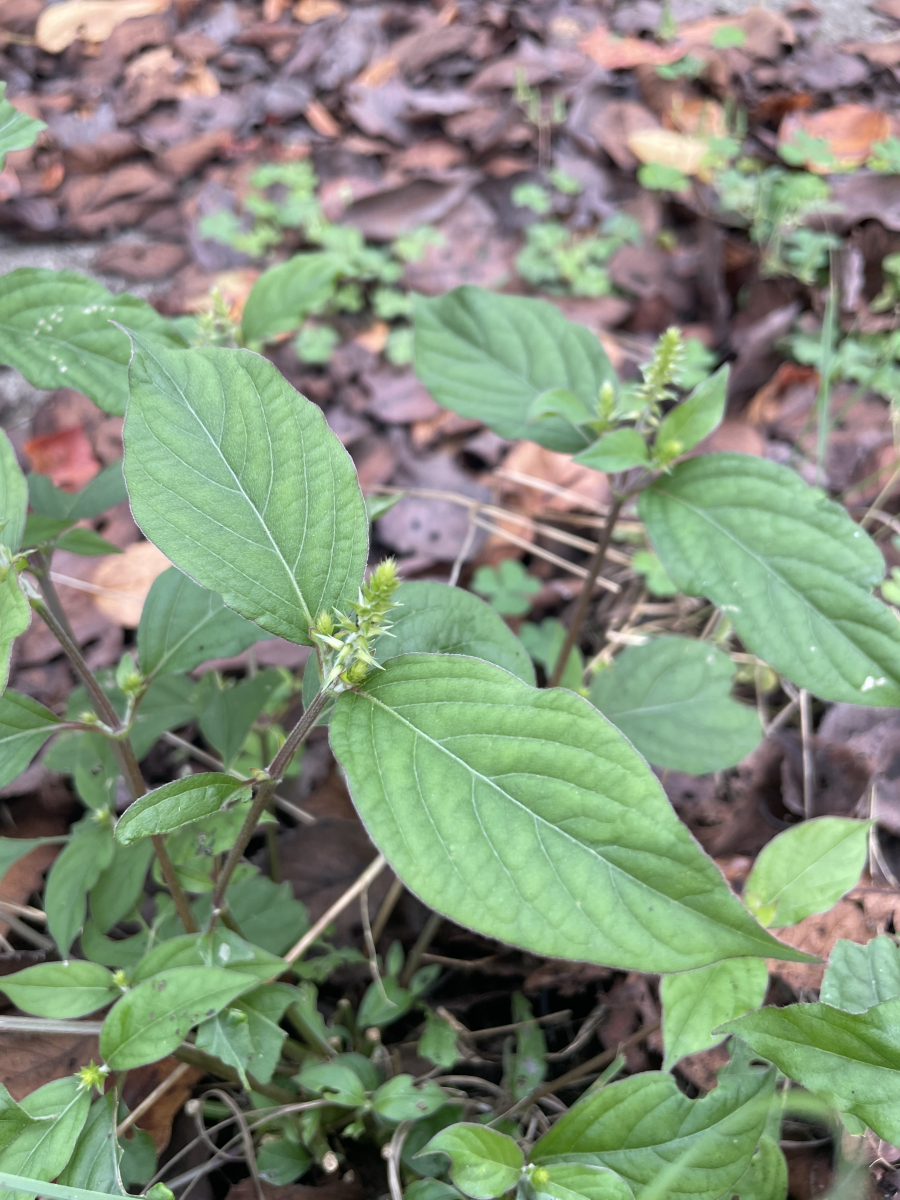 イノコヅチ(ヒカゲイノコズチ)と似ているが、イノコズチより花序が短く、葉の両面に毛が多く、葉の縁が波打ってねじれていることが多いという違いがある。