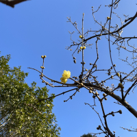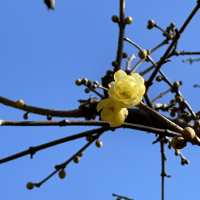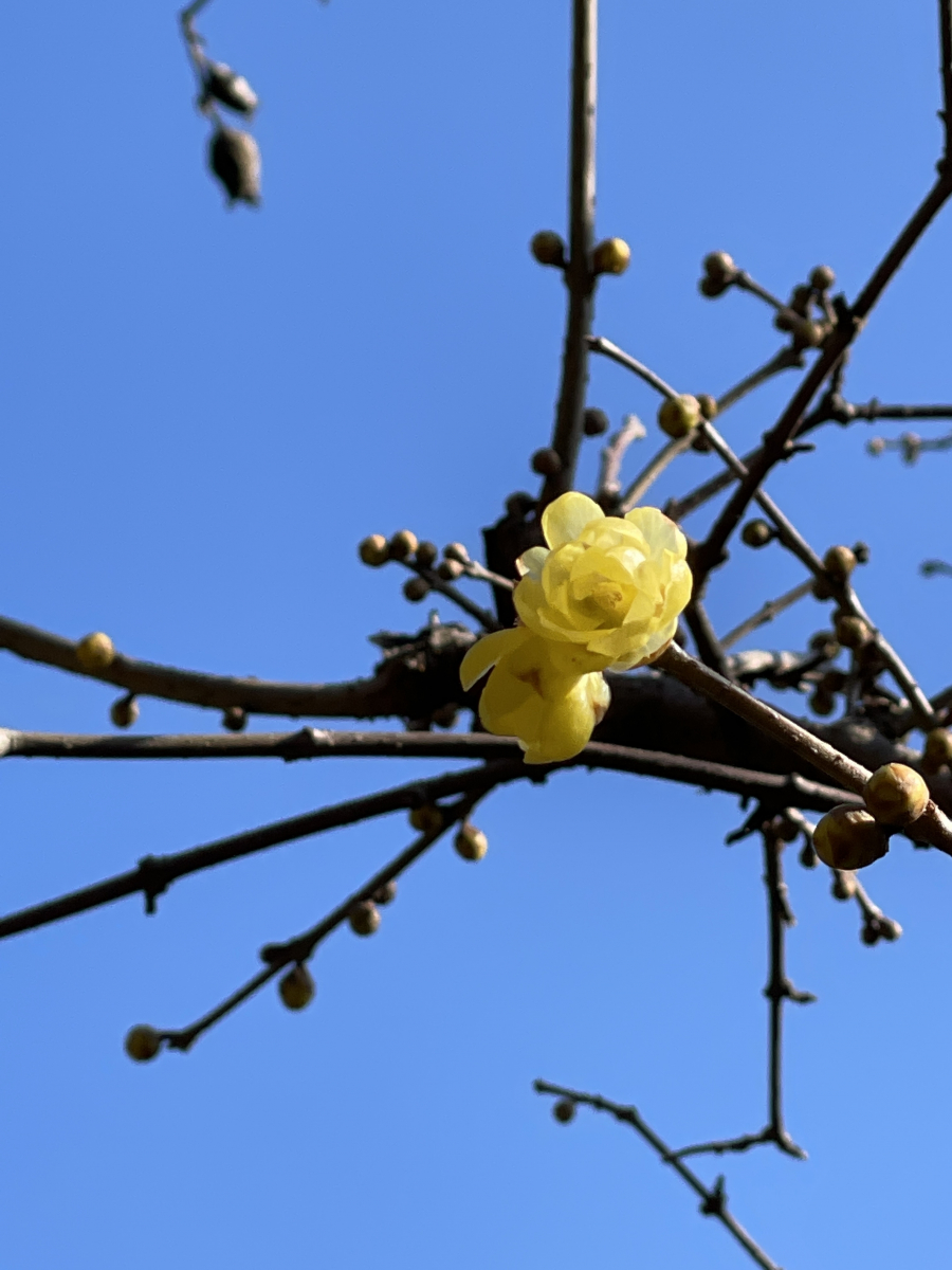 花は1月~2月の葉の展開前に咲き、強い芳香がある直径 1.5~4 cmの黄色い花を、前年枝の葉腋にやや下向きにつける。