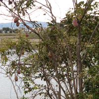 9~10月に成熟した果実は縦に割れて、多数の種子を含む甘い果肉を見せる。