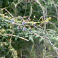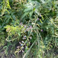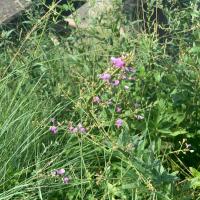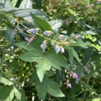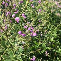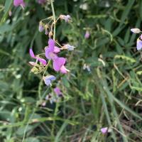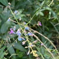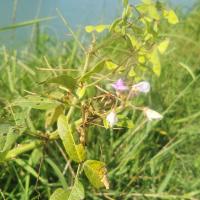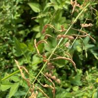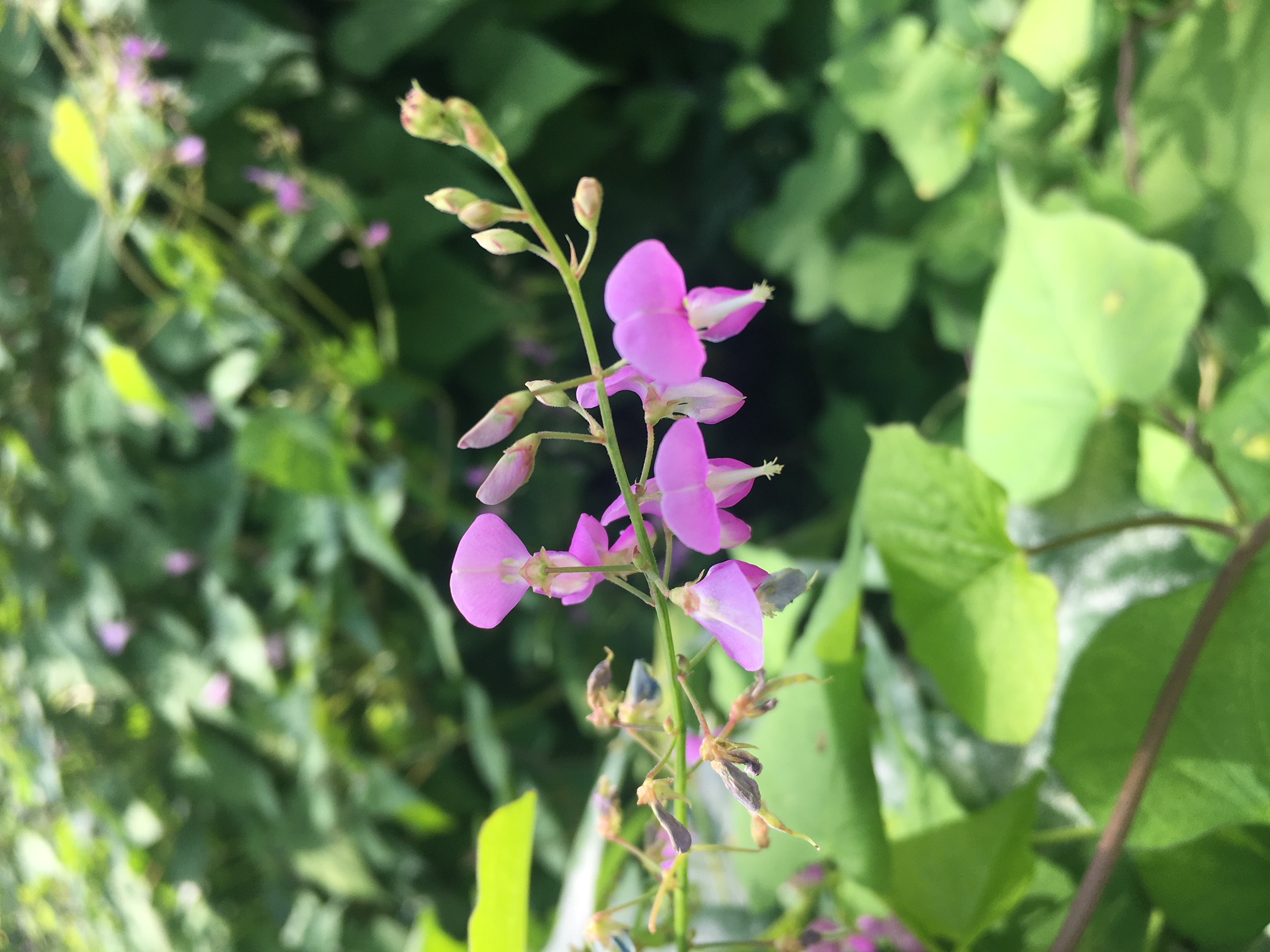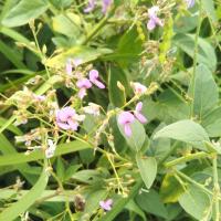 花は、7月~9月に咲き、紅紫色の蝶形花で翼弁が天狗の鼻のように長く突き出す。これは外来のヌスビトハギの仲間の特徴で、イリノイヌスビトハギ、アメリカヌスビトハギでも見られる。