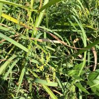 北アメリカ原産の一年草で、高さは0.5~1mになり、荒地、道端などに生えている。