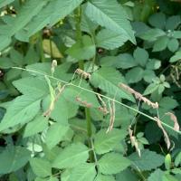 葉は3小葉からなり、葉身の側脈は葉の縁まで到達しない。これも、外来のヌスビトハギの仲間の特徴である。