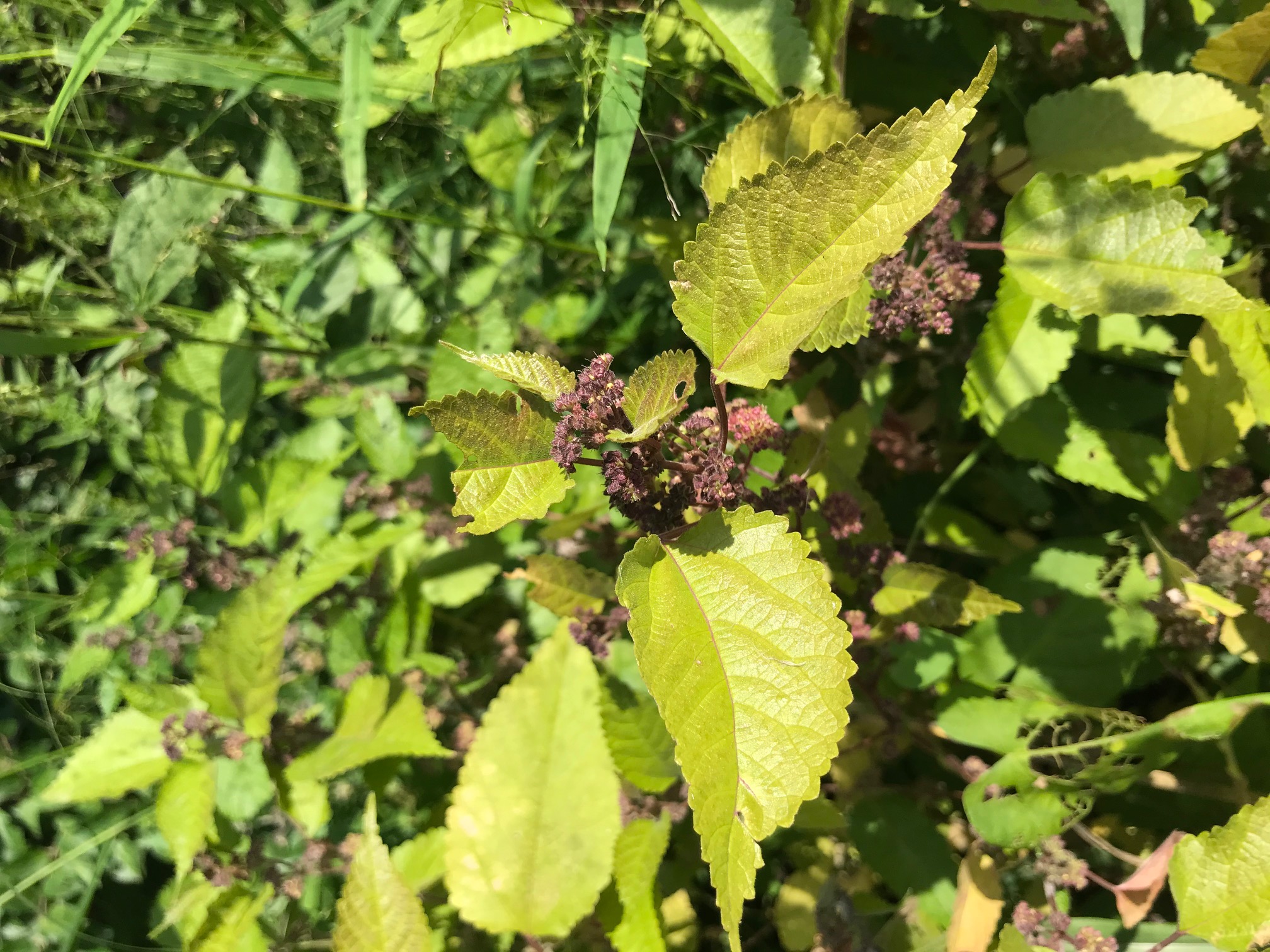 雌雄同株で上部に雄花、基部に雌花をつけ、花は8月~10月に咲く。