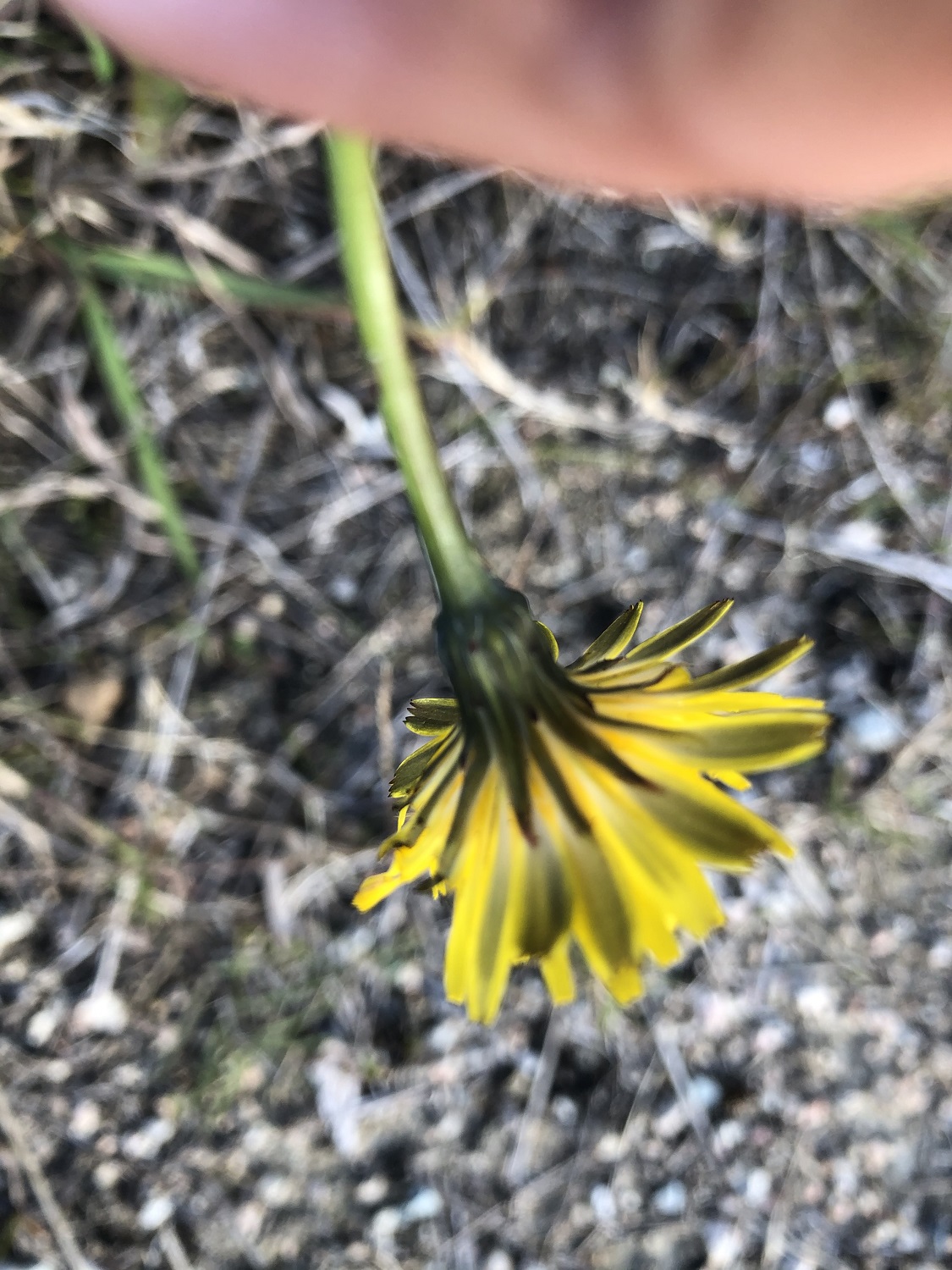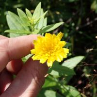 近畿地方に分布し黄色い花をつけるよく似たヤマザトタンポポは、総苞外片が内片の1/2より長い。