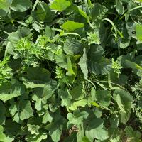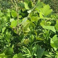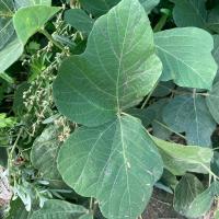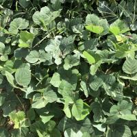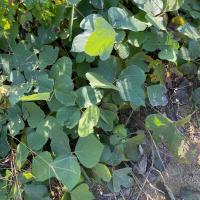 ツルは地面をはうほか、樹木など他の植物に絡まって覆うように生え、1年で10m以上伸びる。