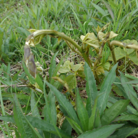 根元は木質化し、根は木質化した長芋状の塊根となり、長さ1.5m、太さは径20cmになる。